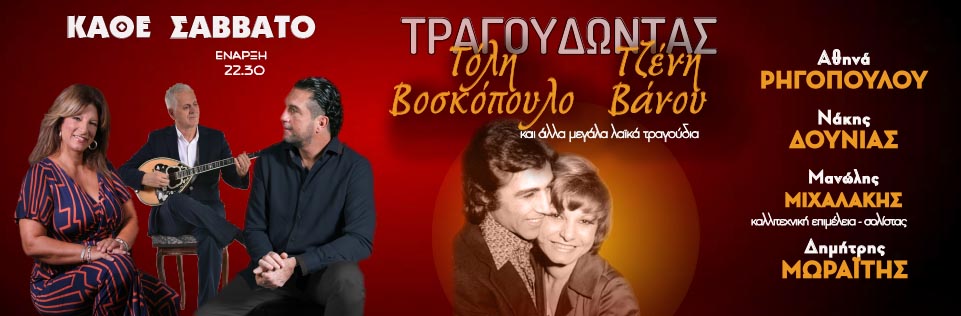 «Τραγουδώντας Τόλη Βοσκόπουλο, Τζένη Βάνου και άλλα μεγάλα λαϊκά τραγούδια…»   ΑΘΗΝΑ ΡΗΓΟΠΟΥΛΟΥ – ΝΑΚΗΣ ΔΟΥΝΙΑΣ – ΜΑΝΩΛΗΣ ΜΙΧΑΛΑΚΗΣΚάθε Σάββατο από [...]